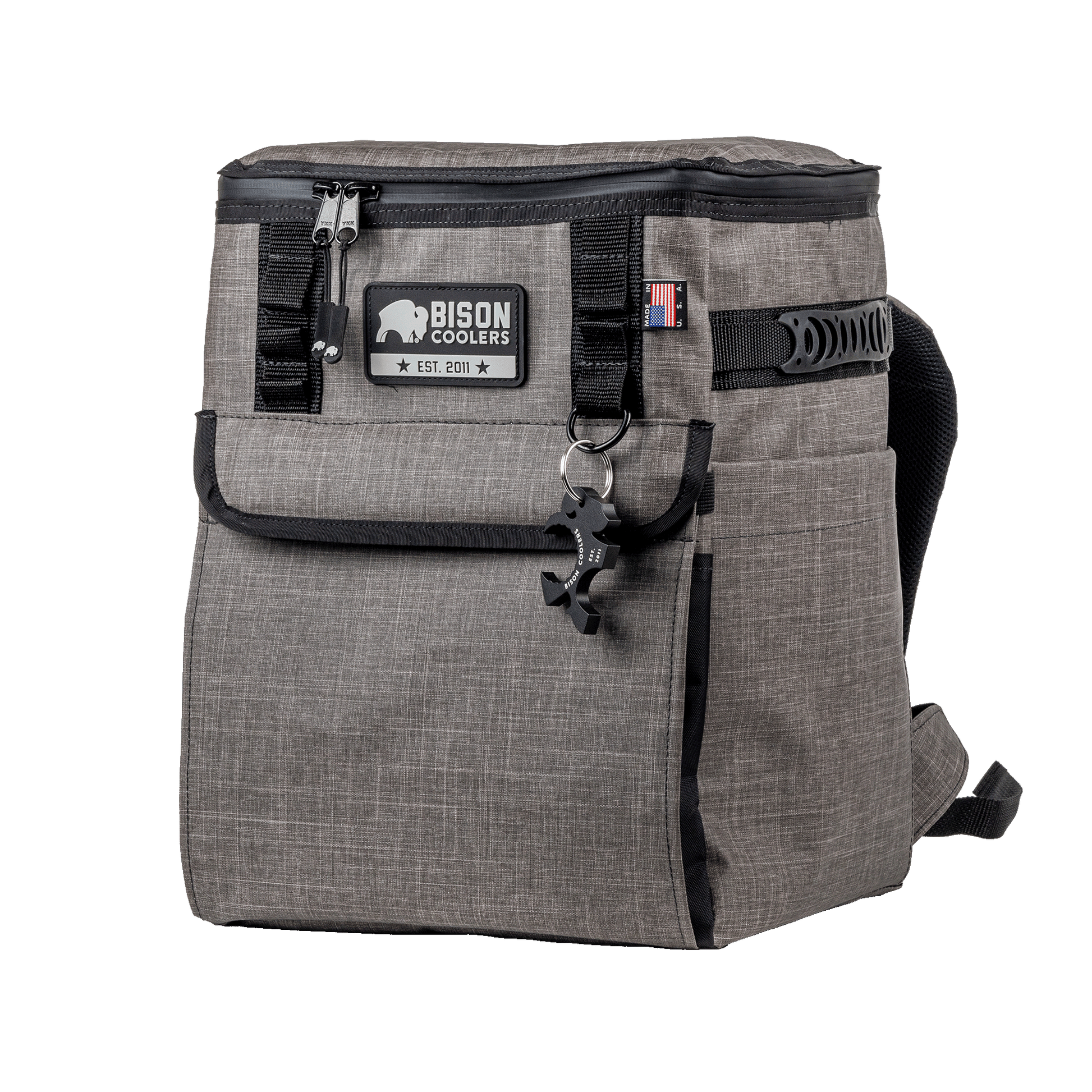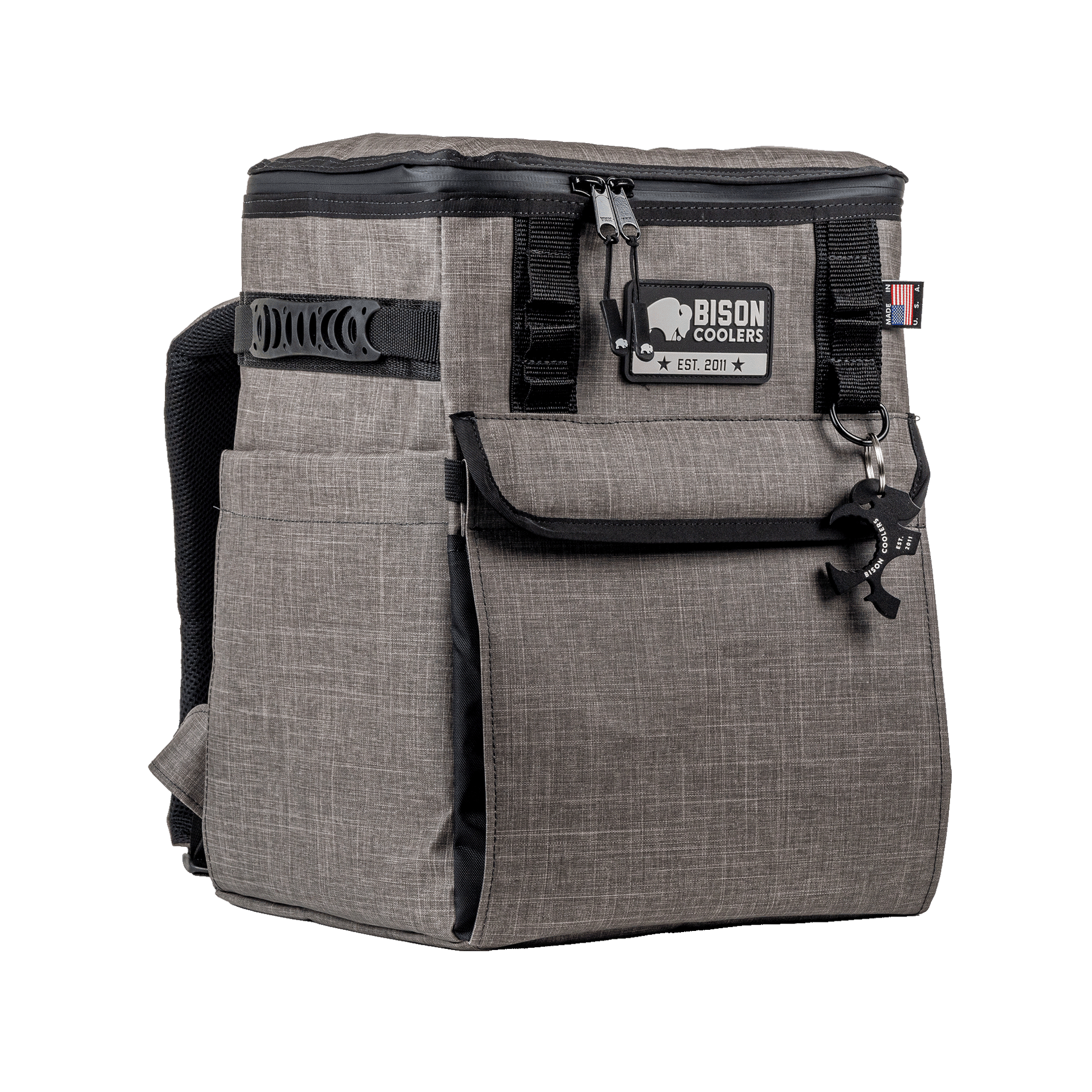 The long awaited ultimate companion for your adventures. Designed and crafted in the USA, this rugged backpack cooler combines durability with exceptional cooling capacity, holding up to 18 cans of your favorite beverages. Whether you're hiking, camping, or heading to a tailgate, the Switchback ensures your drinks stay refreshingly cold for hours. With comfortable padded straps and a spacious interior, it's not just a cooler; it's your go-anywhere, do-anything essential. Embrace quality, embrace adventure with Bison Coolers Switchback.